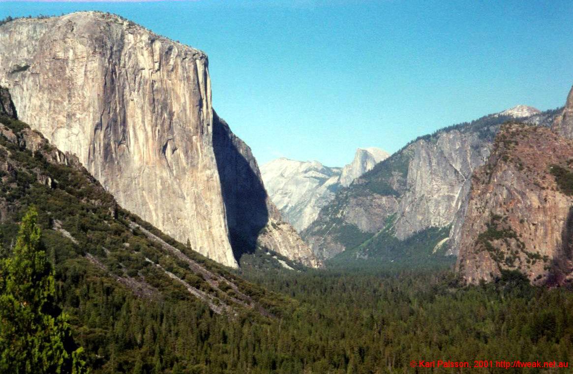 El Cap in foreground, Half Dome in far background