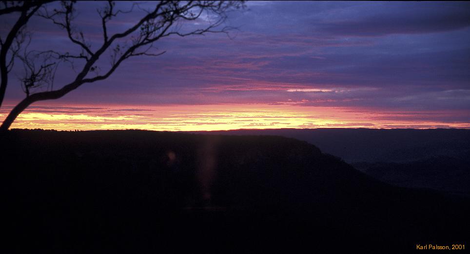 The house we rent in Blackheath, "Cooee" is magnificent. The dining room, with its Westward facing windows often gives up a view of a wonderful sunset, and it's just a nice house. Always a hustle to get a bed in the back room, or even just a bed anywhere! There's always some spliff politics going on over who will buy the carton that night, and who hasn't bought one yet, and who is the next in line.
