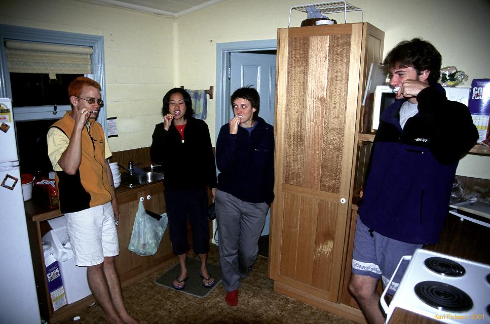Blueies0102--17.jpg Bob, Olivia, Jane and Jono compare toothpastes. |